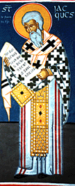 PREMIER ÉVEQUE DE JÉRUSALEM fêté le 23 octobre et le dimanche après Noël (L'an de Jésus Christ 61 on 62) Ce récit est emprunté à l'Histoire Ecclésiastique d'Eusèbe, qui l'a tiré lui-même d'Hégésippe, historien du 2e siècle, dont nous ne possédons plus que quelques fragments |